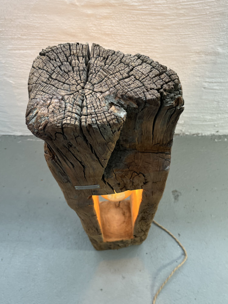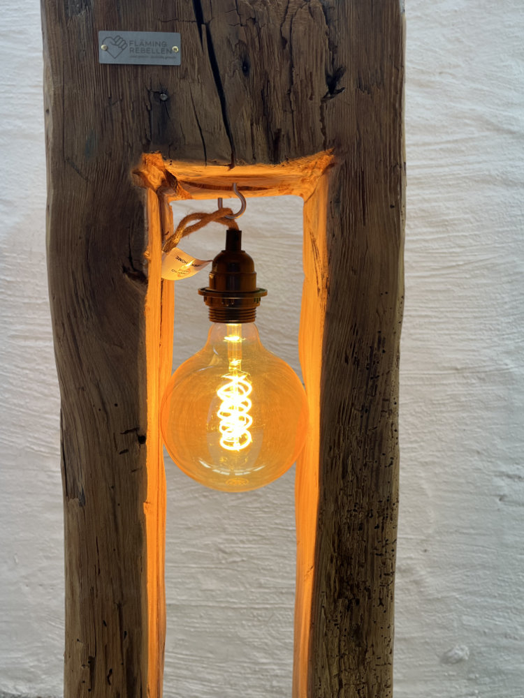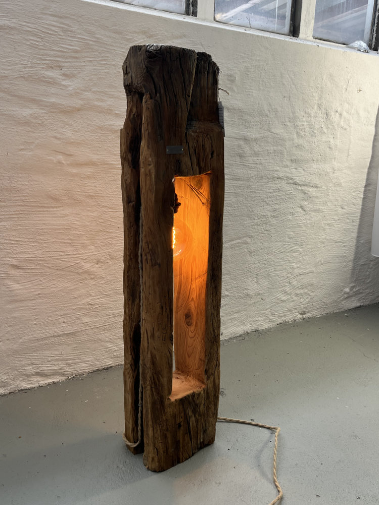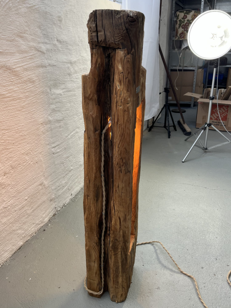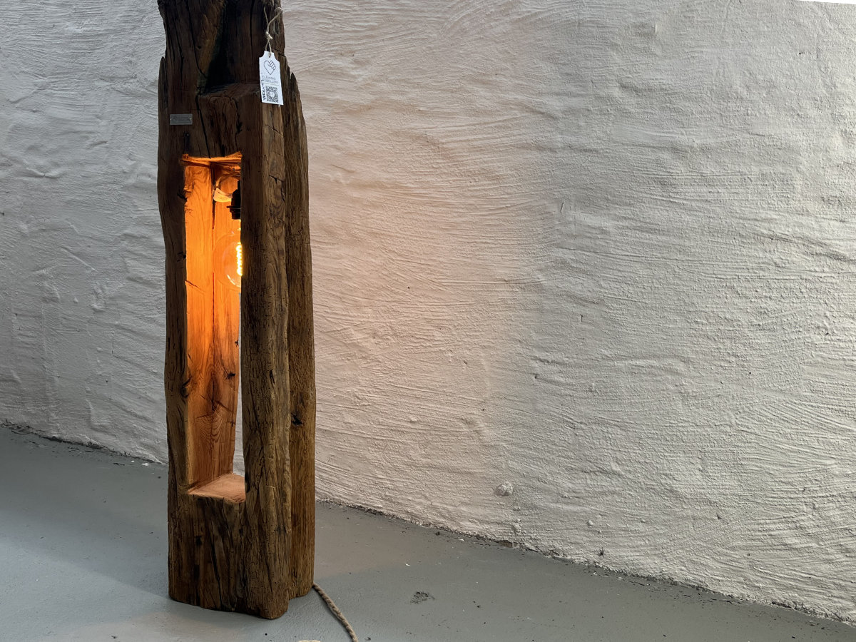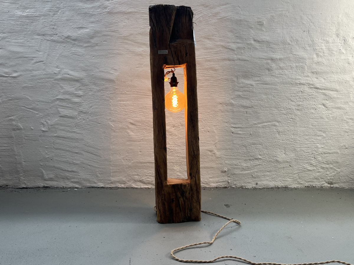 Stehleuchte aus historischem Balken