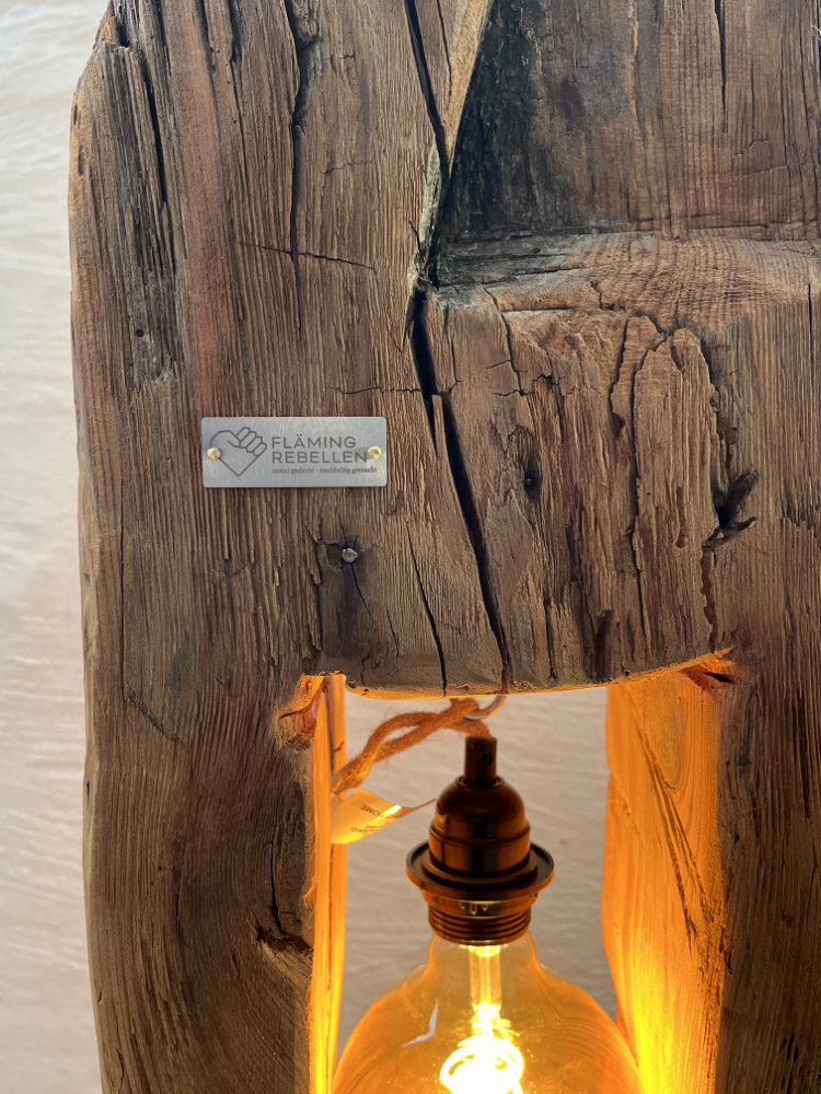 Diese einzigartige Stehleuchte wurde aus einem über 200 Jahre alten Balken der ehemaligen Mosterei in Bad Belzig gefertigt. Jeder Balken trägt sichtbare Spuren der Zeit – Risse, Zapfenlöcher, handwerkliche Einkerbungen – und macht jede Leuchte zu einem unverwechselbaren Unikat der Flämingrebellen.