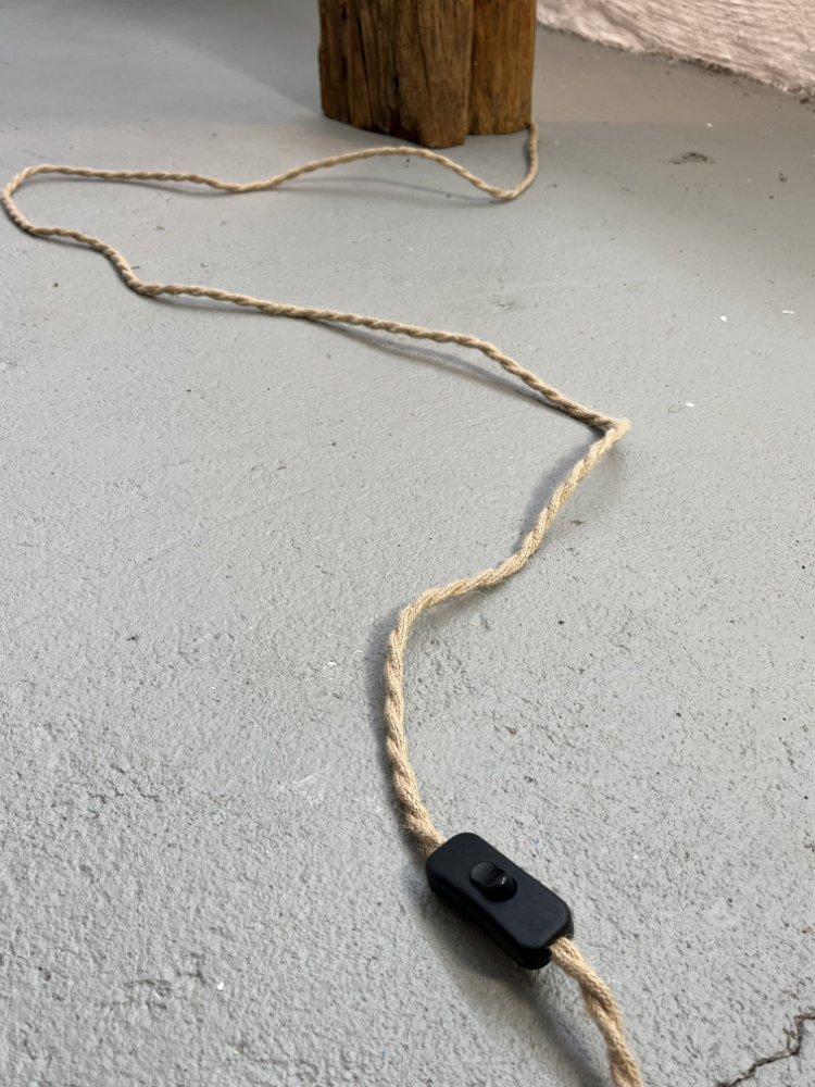 Für die Elektrik wurde ein neues Anschlusskabel im rustikalen Naturfaser‑Look verbaut, passend zum historischen Material.