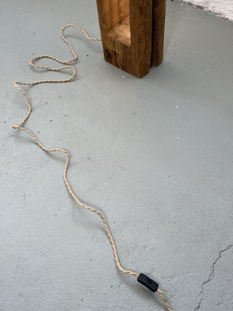 Für die Elektrik wurde ein neues Anschlusskabel im rustikalen Naturfaser‑Look verbaut, passend zum historischen Material.