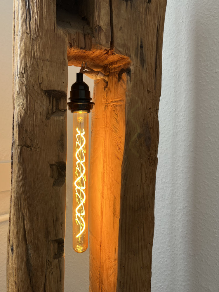 Ausgestattet mit einer E27-Fassung kannst du das Leuchtmittel frei wählen – ob klassische Edison-Glühfadenoptik, moderne LED oder extra warmweißes Vintage-Leuchtmittel. Der Lichtschacht im Balken sorgt für ein sanftes, atmosphärisches Leuchten.