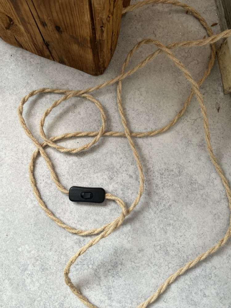 Für die Elektrik wurde ein neues Anschlusskabel im rustikalen Naturfaser‑Look verbaut, passend zum historischen Material.